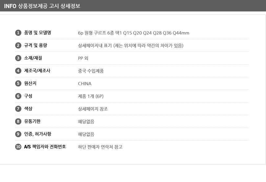 6p ¿øÇü ±¸¸£ÇÁ 6Á¾ ÅÃ1 Q15 Q20 Q24 Q28 Q36 Q44mm